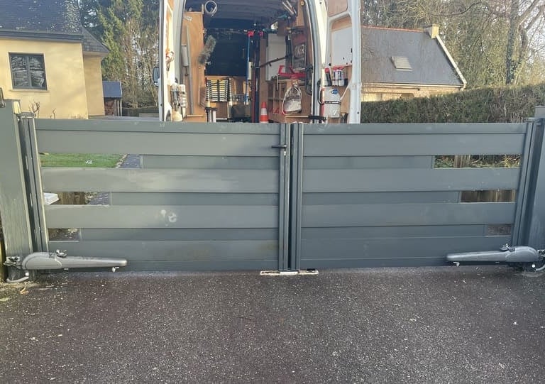 Plusieurs solutions existent, comme la motorisation à bras articulés ou à vérins, permettant d’adapter l’installation aux contraintes techniques et esthétiques de l’entrée.